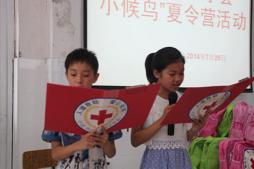 “没想到爸爸妈妈工作的地方对我们这么好,我又有新书包了,我一定好好学习,报答红十字会对我们的关爱!在“小候鸟”博爱夏令营里,来自四川的“小候鸟”小丽高兴地收到了装有价值400多元的学习、体育用品的书包。当天共有400余“小候鸟”收到爱心书包。