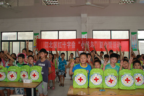 为构建和谐社会,增加外来务工人员子女的归属感与幸福,减轻外来务工人员家庭的实际困难。江北区红十字会从2012年起,实施“关爱‘小候鸟’书包工程”,每年拿出10多万元,资助来江北度暑假的14周岁以内的“小候鸟”。他们根据小学生的学习生活需求,购置了铅笔、钢笔、计算器、物理实验仪器、衣服、足球等学习、生活、体育用品。这些物品深受“小候鸟”的欢迎。
