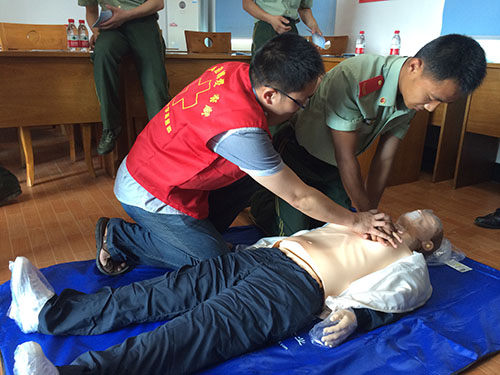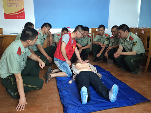 在“八一”建军节来临之际,7月25日上午,路桥区红十字会针对边防部队日常执勤执法工作的需要,共同开展应急救护进警营活动,组织4名红十字救护师,来到金清边防派出所,为该所民警普及应急救护知识。