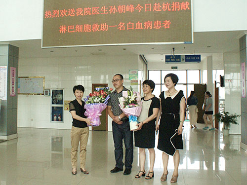 9时许,在鲜花与祝福声中,孙朝峰起程赴杭,计划将在15日上午正式进行淋巴细胞采集。(王兆化 杨丽倩)