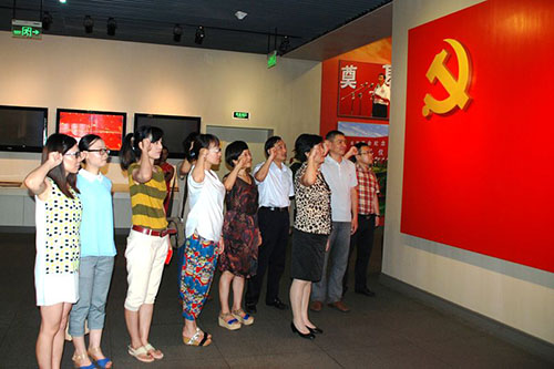 活动期间,全体红十字系统干部还参观了嘉兴南湖革命纪念馆,重新感受波澜壮阔的中国革命史,重新体验中国共产党人百折不饶、艰苦奋斗的战斗历程;在鲜红的党旗面前,人人重温入党宣誓,表达红十字干部始终牢记群众观点、践行群众路线的信念和决心。