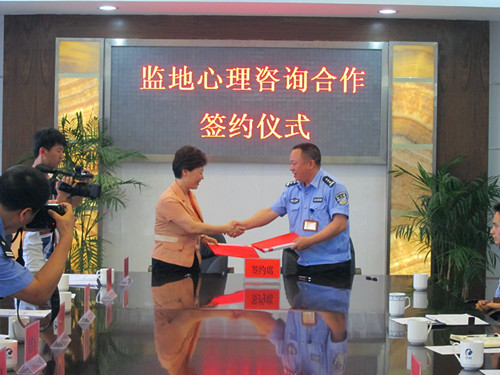 签约仪式在和谐、庄重的气氛中进行,徐跃龙副监狱长和吴康丽副会长代表各自单位在《罪犯心理健康指导工作合作协议》上签字,这代表着市监地合作在服刑人员心理健康方面的又一个创新尝试。