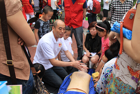 在活动现场,市红十字会工作人员和10余名红十字志愿者为市民提供了义诊及健康咨询服务等多种形式的社区志愿服务活动;志愿者采取现场讲解与示范、居民互动模拟操作相结合的形式,形象生动地介绍了如何有效利用120急救车到来前的救命“黄金4分钟”,如何掌握好心肺复苏、气道梗塞、创伤包扎、搬运等院前急救基本技能的要领,不少居民还踊跃参与急救技能的实践操作练习。活动现场还设置了造血干细胞捐献和人体器官捐献咨询服务台,近百人咨询了捐献知识。整个活动累计发放《应急救护知识手册》和宣传折页200余套。
