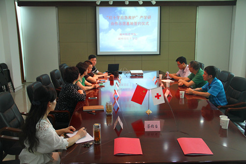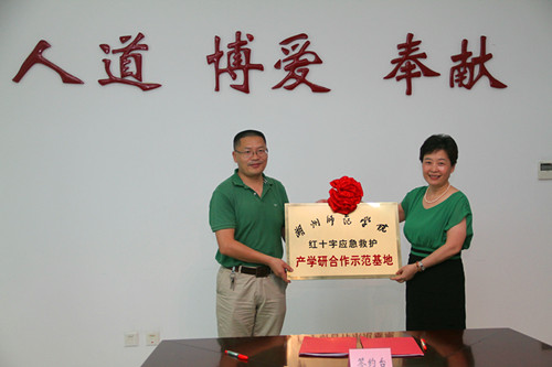 近日,湖州师范学院与湖州市红十字会本着“优势互补、互惠共赢、长期合作、共同发展”的原则,决定建立产学研全面合作关系,结成产学研合作的战略联盟,共建“红十字应急救护”产学研合作示范基地,双方将在红十字应急救护科技开发、人才培养、技术转让、咨询与服务、互惠共享等方面开展全面合作。 7月1日下午,该合作示范基地签约仪式在市红十字会112会议室举行,市红十字会常务副会长吴康丽和湖州师院服务地方办主任顾菊观代表各自单位进行了签约,并为基地揭牌。(潘熠)