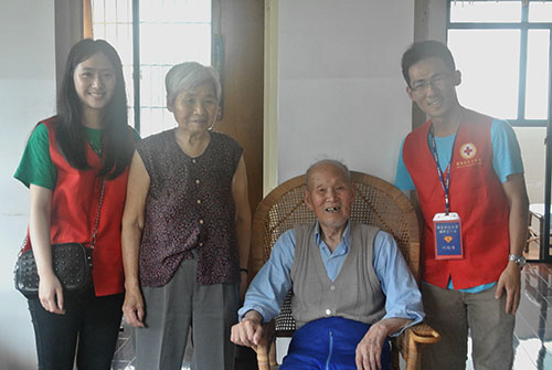 志愿者们首先来到了南苑社区,分组上门看望了10余位空巢老人。面对老人们身体状况差、行动不便、心灵孤寂的情况,他们有的为老人们打扫起了卫生,有的嘘寒问暖拉起家常,有的送上家用急救包,认真地讲解起常用的急救知识。起身告别时,当老人们听说这些大学生志愿者不少是远自台湾而来,更是感动不已,泪眼婆娑地拉着孩子们的手迟迟不肯松开。