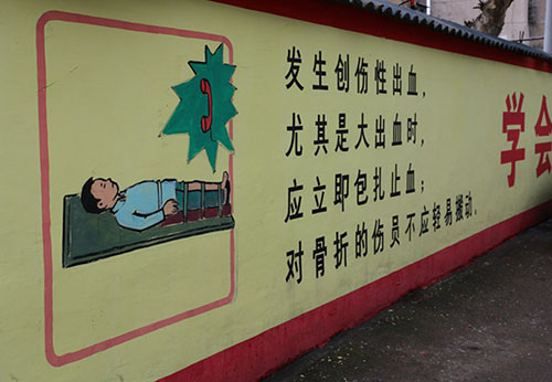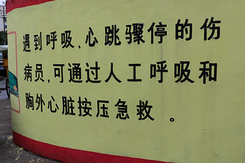 在城市当中,我们总能看到一堵堵矮墙上有城市想要传达给市民的文明信息,这无形中也代表着这个城市对文明、安全的重视。诸暨也不例外,在不同的道路边上总会有形象的图片配上简短明了的文字。在诸暨的暨东路往城市广场的路上,我们可以看到现场救护小知识,在人来人往的街上,匆匆路过的行人或许会因为不经意的一瞥,学到一个非常简单有用的小知识,在必要时就真的用上了。