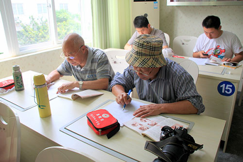 寿保夫和夏永芳俩位老人是培训班中年龄最大的学员,他们虽然年事已高,但学习劲头不逊色于年轻人,戴着老花镜,一字一字地学,一个动作一个的动作的做,那个认真劲令所有在场的学员钦佩。在练习心肺复苏时,红会工作人员担心他们身体吃不消,俩老豁然一笑,说是自己身体很棒,还年轻!