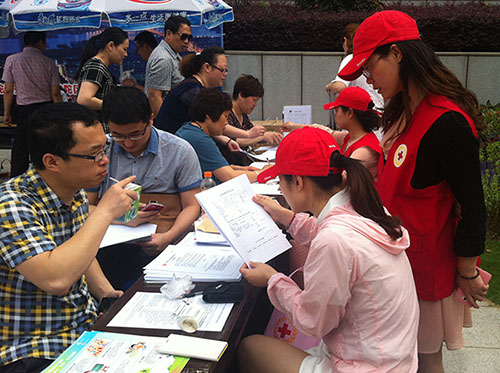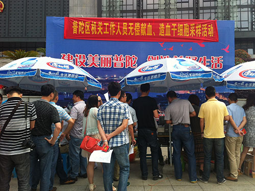 今年的6月14日是第十一个世界献血者日。昨天上午,普陀区红十字会在东港商务中心开展机关工作人员无偿献血、造血干细胞采样活动。