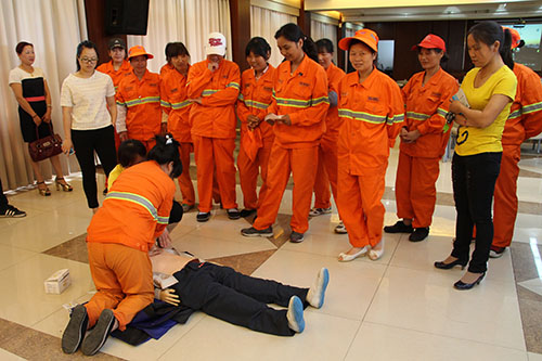当天上午,杭州市拱墅区红十字应急救护讲师团优秀师资李红霞应邀主讲,环卫工人的学习热情很高,70余名人员坐满了会议室。培训班上,培训老师介绍了红十字相关知识和应急救护的基本技能、心肺复苏术、中暑如何处理等。培训老师还带来模具现场演示,手把手地给环卫工人传授施救、自救知识,还邀请环卫工人进行操作演示,现场气氛非常活跃。接受培训的环卫工人纷纷表示,救护知识培训非常有必要,掌握一定的急救知识不仅可以提高自身的避险能力,还可以在危急时刻救助别人,相信这次培训终生受用。(胡倩雯)