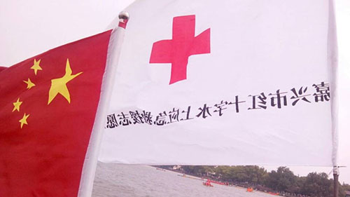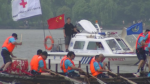 红十字旗飘扬在嘉兴端午龙舟赛上