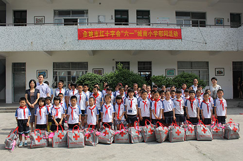在兰江街道城南小学,孩子们翻看着书包里色彩鲜艳的六角画笔、文具套装、儿童伞以及卡通杯子等,稚嫩的小脸露出了灿烂的笑容。另有36名贫困学生领到了街道红十字会发放的1.8万元慰问金。校长韩华山代表校方对市、街道两级红十字会的慰问表示感谢,希望孩子们在社会大家庭的关爱中刻苦学习,心怀感恩,长大后回报社会,报效祖国,将“人道、博爱、奉献”的红十字精神代代传承。