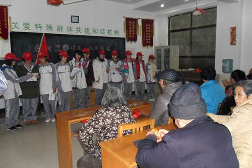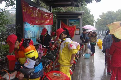 笕桥小学组织开展以“红十字与雷锋精神同在”为主题的系列红十字志愿者服务活动,高年级红十字志愿者开展“小红帽扮靓小红车”活动,上街清洁公共自行车(小红车);中年级志愿者通过红十字志愿主题队会,引导队员从身边做起、从小事做起,做有益于他人合宜的同时又能保护好自己的好事;低年级志愿者在母亲节通过“将爱心献给妈妈,干一件力所能及的事”活动,从关爱身边的亲人做起,培养少先队员的感恩品质和健康心态。江干职高红十字志愿服务大队的同学们分成12个小分队,结合自身所学的一技之长,冒雨赴养老院、社区、残疾儿童托管中心等地,开展便民服务,受到了居民的一致好评。
