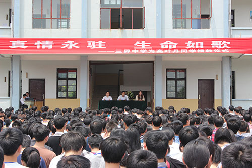 得知高叶丹同学的情况之后,该校领导非常重视,校红十字会向全校师生发出的为高叶丹同学捐款的倡议,立即得到了响应,一时间,全校上下都投入到了这场充满爱意的活动中,爱的旋律又一次唱响该校校园。