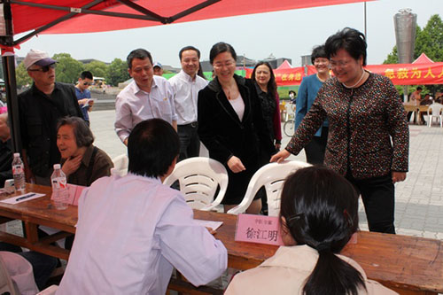 为纪念国际红十字运动151周年暨第67个“五•八”世界红十字日,进一步弘扬“人道、博爱、奉献”的红十字精神,凝聚人道力量,5月8日,杭州市红十字会联合上城、下城、江干、拱墅、西湖区红十字会在吴山广场开展大型广场宣传服务活动。浙江省红十字会党组书记、常务副会长王冬梅,杭州市副市长、市红十字会会长陈红英到现场看望工作人员和红十字志愿者,并走访慰问上城区2位造血干细胞志愿捐献者。
