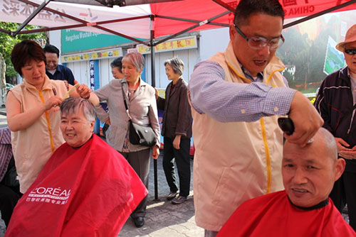 今年广场宣传服务活动以“救”在身边为主题,围绕挽救生命应急救护;关爱生命倡导造血干细胞志愿捐献和人体器官志愿捐献等内容开展了丰富多彩的志愿服务活动。来自上城区的医疗专家们为市民提供心血管、内分泌、春季防病等方面的义诊和免费测量血压、血糖等服务;红十字会工作人员结合日常生活实际,从创伤救护的止血、包扎、固定、搬运和心肺复苏等方面为市民开展咨询和演示服务;红十字志愿者免费为市民提供理发、自行车修理、心理健康和家居装饰咨询等服务。活动现场还设置了造血干细胞志愿捐献和人体器官志愿捐献、无偿献血和法律宣传咨询服务台,进行造血干细胞志愿捐献登记采样和红十字运动、人体器官捐献、无偿献血、法律等知识的宣传活动。