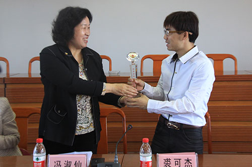 冯会长向裘可杰甘于奉献的精神表示感谢,称赞他的满腔热血豪情,有力践行了社会主义核心价值观,展示了新区大学生的高尚情怀,也诠释了“人道、博爱、奉献”的红十字精神,为全市人民、特别是当代大学生树立起助人为乐、甘于奉献的榜样,是我们舟山群岛新区的骄傲,是当之无愧的爱心天使。随后为他颁发了“爱心天使”杯,送上了鲜花与慰问金。其他与会人员也纷纷发言,对裘可杰的爱心善举表达了钦佩之情,并表示今后将更加关心、支持捐献造血干细胞这一崇高而光荣的工作,通过全社会的努力,让更多的患者重燃希望,让红十字“人道、博爱、奉献”精神进一步发扬光大。