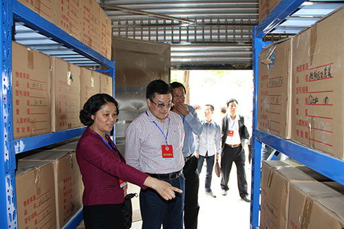 金华市政协主席郑金平(左2)视察备灾救灾仓库