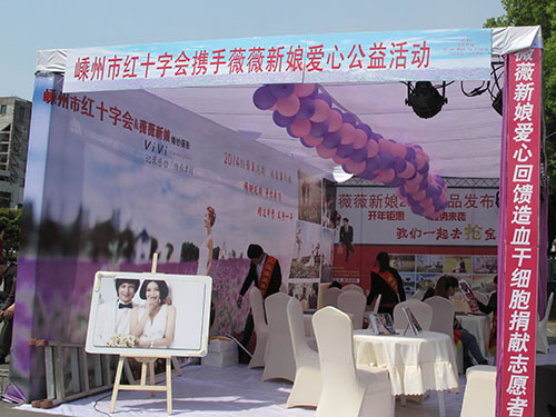 4月6日,嵊州市红十字会携手薇薇新娘婚纱摄影店在中心广场举办公益活动,凡今年参加造血干细胞捐献采样登记的爱心人士,都可享受由薇薇新娘提供的价值799元的免拍卡一张。