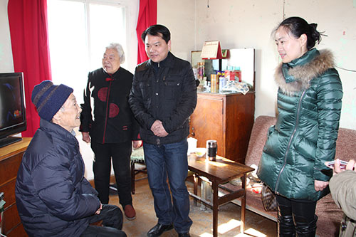 祥符街道的空巢老人吴炜然去年检查出患肠癌,治疗费用花费大。在吴炜然家,潘洪华与杭州罗莱迪思照明系统有限公司副总经理颜晓华仔细询问了老人的身体健康状况,并与吴炜然夫妇俩促膝谈心,让他们注意保重身体,最后送上了慰问金和年货。
