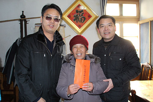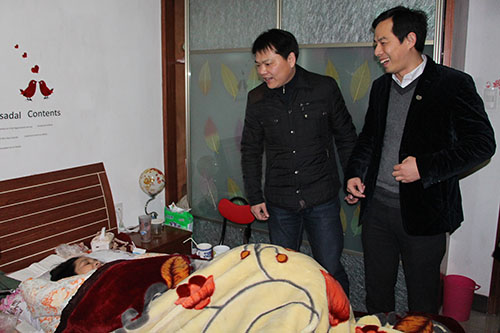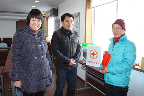 此次慰问的第一户是湖墅街道裘玉萍家。裘玉萍家是失独家庭,唯一的女儿数年前因胃癌去世。随着年纪增大,两夫妻身体越来越差,裘玉萍2013年度住院两次,又查出甲状腺硬化,暂时在家休养,靠老伴照顾。拱墅区红十字会副会长潘洪华与杭州天和建设集团董事长陆关林把1000元慰问金和大米、油等物资送到裘玉萍家中,详细了解裘玉萍的病情和生活情况,叮嘱她有困难找社区红十字会帮忙,并树立坚强乐观生活下去的信心。