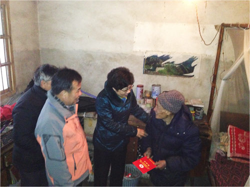 1月15日上午,因中风瘫痪的浦南街道金星村村民张邦镇,从街道红十字会工作人员手中领到了救助金和慰问物品。当天,2014年浦江县“红十字博爱送万家”活动全面启动,救助资金将于近期陆续发放到全县613户困难家庭中。