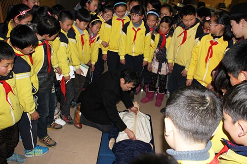 1月17日下午,在金华日报社三楼会议室,金华市红十字会赈济救护处专家为通过电话报名的100多位日报读者现场模拟各种意外事故下的急救措施,并与读者展开互动,讲授应急救护培训基础知识。