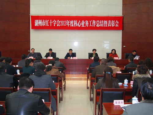 为认真总结2013年度湖州市红十字会核心业务工作,部署明年工作任务,表彰先进、激励斗志,12月10日,市红十字召开2013年度核心业务总结暨表彰会议。湖州市政府副秘书长、市红会副会长徐晏平,市财政局副局长、市红会副会长钱汇丰,市卫生局副局长、市红会副会长沈霞萍等领导出席会议,参加会议的还有各县区红十字会专职副会长及秘书长,拟表彰的先进集体和个人,共约40余人。