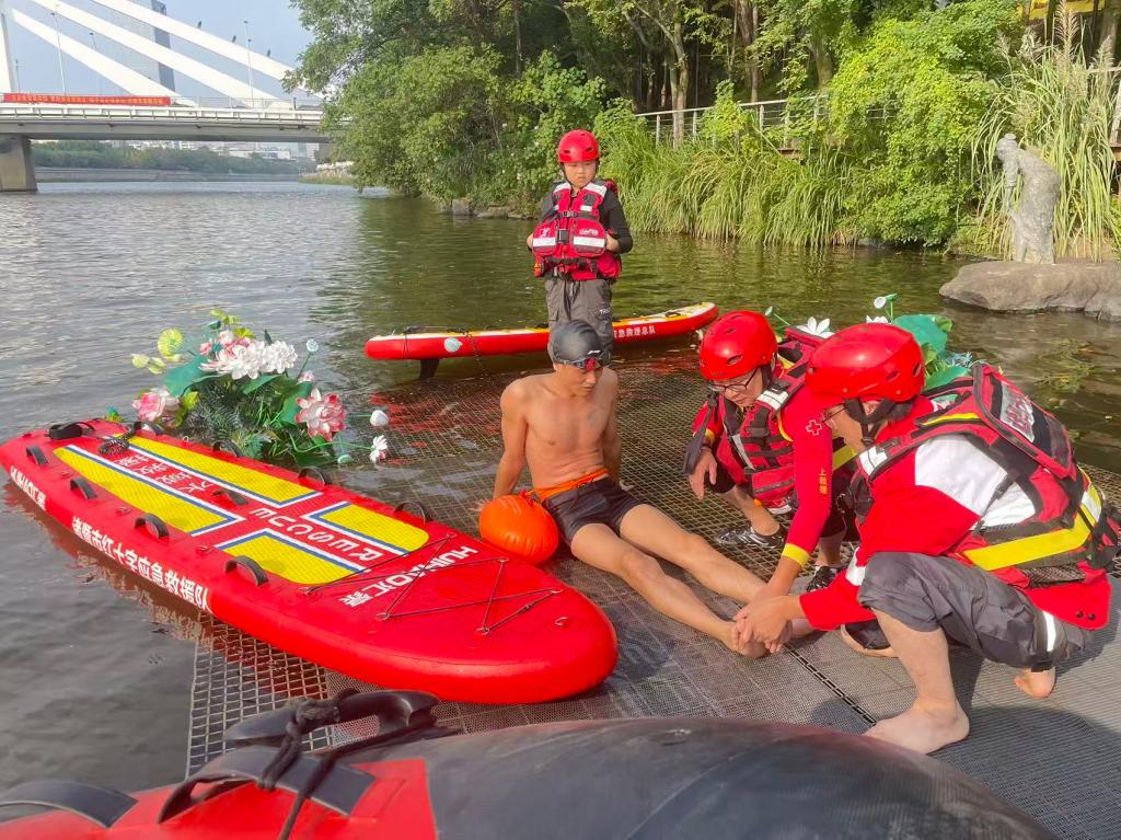 为做好本次保障,救援队提前与组委会对接,开展水域实地勘察,制定专项应急预案,重点针对抽筋、体力不支等常见水上风险做好充分准备。活动期间,救援队采取“定点值守+流动巡逻”相结合的方式,在关键水域设置固定岗,同时安排冲锋舟不间断巡弋,实现1分钟内快速响应突发情况。