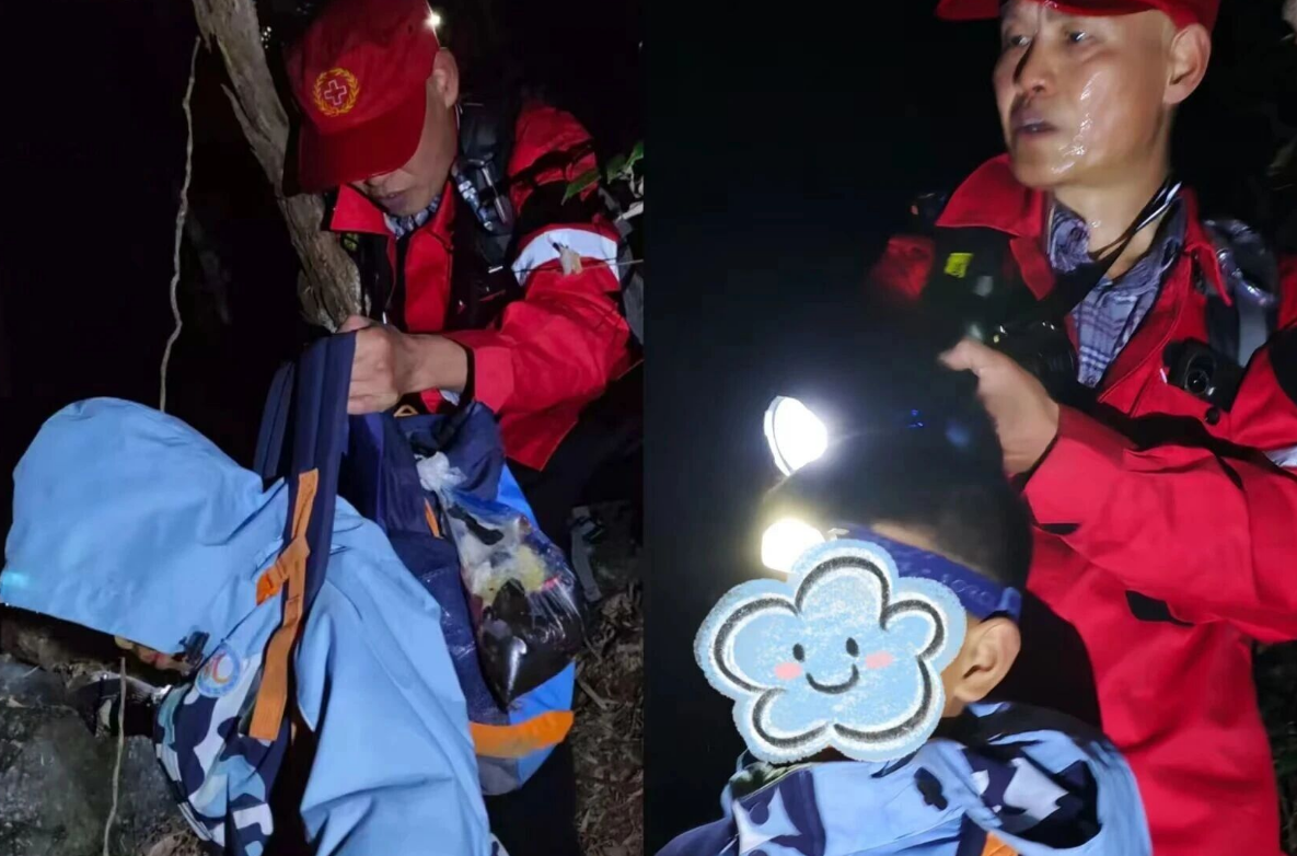 拥有丰富户外经验的队长方平华深知孩童安全至关重要,经协商后,他与队员郑华平两人负责保护9岁幼童下山,其余队员则分别协助两名成人及3岁幼童。救援队员们在狭窄的山路上相互接应、缓慢前行,手电筒的光束在夜色中交织成温暖的生命通道。