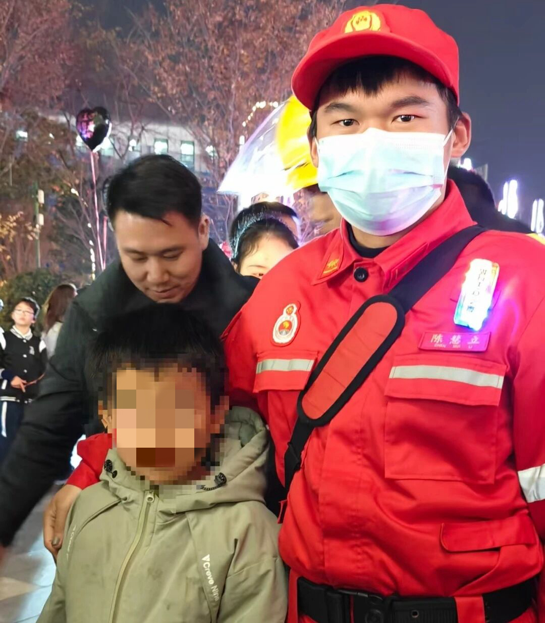 令人欣慰的是,不到15分钟,队员便在一处热门商户排队区域发现一名蜷缩在地的男童,经核实正是走失儿童。当孩子平安回到母亲怀抱时,她热泪盈眶,连连道谢:“太感谢你们了!没有你们,我真的不知道该怎么办……你们就是孩子的守护神!”