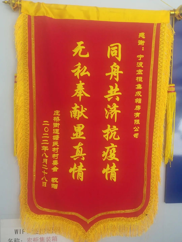 “从帐篷升级到集装箱房能更好应对各种天气变化,采样人员也不用这么辛苦了,疫情之下企业能有这样的义举,我们感动之至!”近日,江北区庄桥街道塘民村党支部书记周百忠将一面代表村民们感激之情的锦旗送到了爱心企业宁波宏柜集成箱房有限公司总经理黄兴手中。