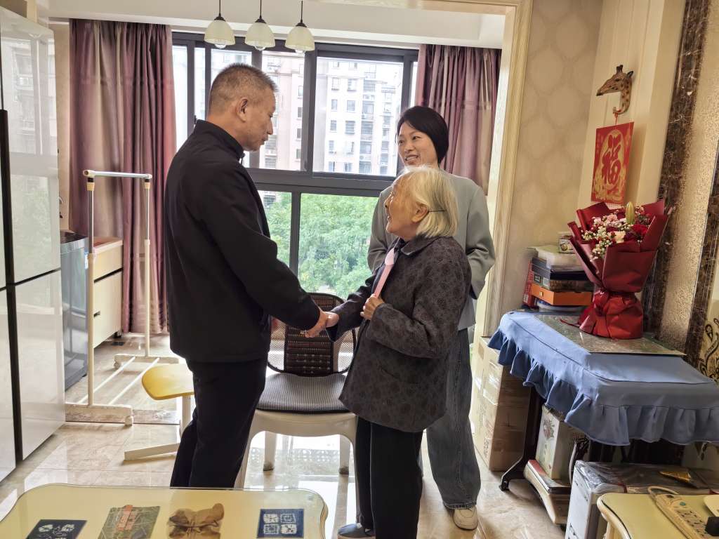 在重阳节来临之际,宁波市江北区红十字会党组书记、常务副会长应庆伟一行走访慰问辖区内百岁老人。