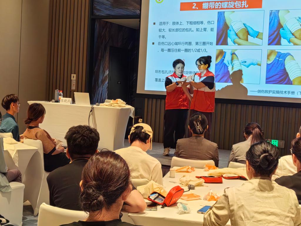 为提升企业员工应急救护能力,推进“救在身边·文旅守护”行动,积极参与第26个“世界急救日”,9月9日,舟山市普陀区红十字会为舟山悦椿酒店员工开展救护员取证培训,39名员工通过考核并成功获得救护员证书。