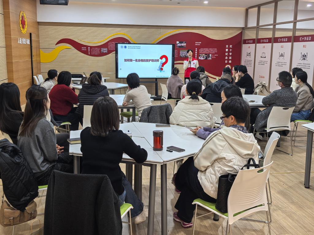 本次复训研讨班采取理论学习、课程研讨与人文宣讲相结合的模式,内容聚焦急救教学法与核心救护技能的深化研讨。红十字应急救护师围绕“心搏骤停的应急救护”“气道异物梗阻的解除方法”“急性冠脉综合征的识别与应对”“出血的应急救护”等关键课题开展讲授与交流,并进行现场点评与指导,旨在提升师资的专业授课能力。