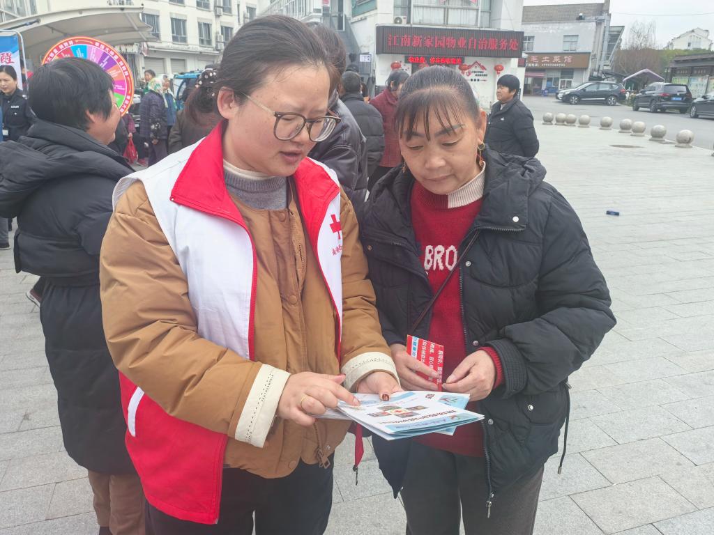 3月5日上午,新丰镇红十字会参加“3·5”学雷锋暨“风向标”志愿服务集市广场宣传活动,向群众发放应急救护培训宣传手册,普及急救知识,提升公众自救互救能力。