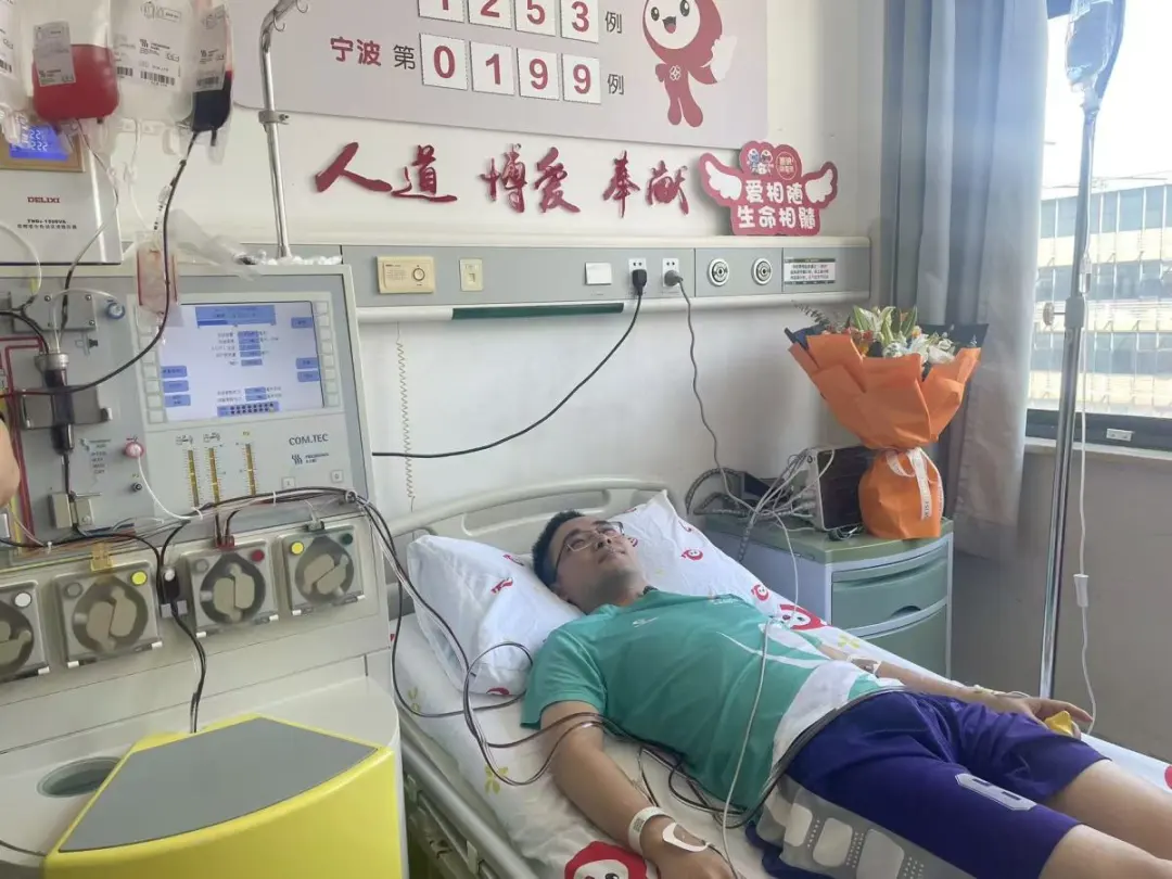 8月29日,在宁波造血干细胞爱心采集室内,何西成功捐献300毫升造血干细胞混悬液,成为了宁波市第199例、浙江省第1253例造血干细胞捐献者。