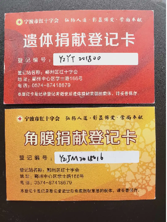 这份最后的牵挂,源于他八年前一个郑重的决定——2018年4月,王义迪老人通过宁波市红十字会完成了捐献登记,成为一名遗体(组织)捐献志愿者。“了了一个心愿,随时准备出发。”他在登记后这样写道。