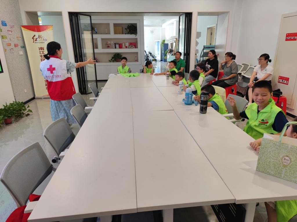嘉兴市南湖区的基层红十字组织志愿者走进孩子们中间,积极践行红十字精神。