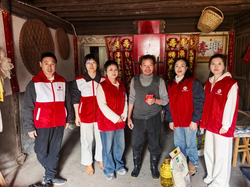 活动临近尾声,县红十字会志愿者和医院工作人员在当地干部的带领下,走访慰问象溪镇困难群众,为他们送上米、油等生活物资,并致以亲切问候。