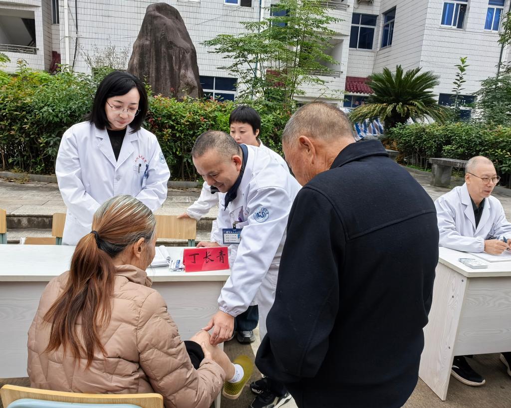 活动现场,吴苏君医院的专家团队耐心为村民提供诊疗服务,认真听取病情描述,仔细进行身体检查,并根据村民的具体情况给出专业的诊疗建议和健康指导,同时为村民免费进行血糖检测和现场贴敷本院膏药。