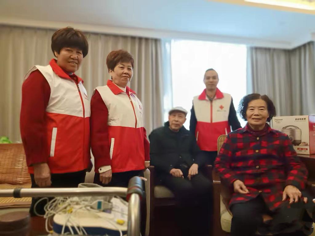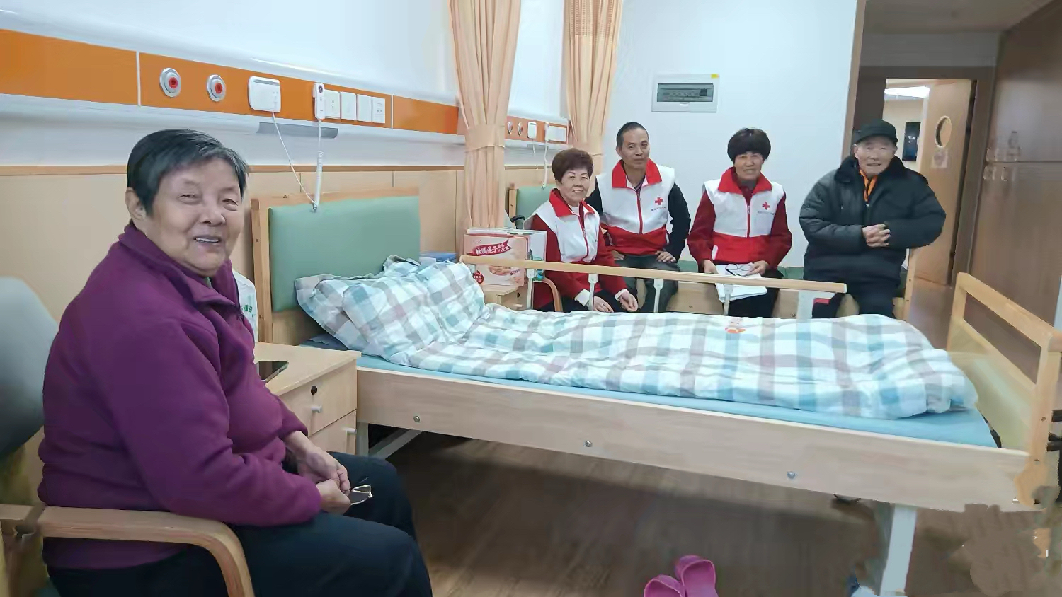 11月17日下午,衢州市红十字会4名志愿者先后走进柯山康养中心与双港街道郎园敬老院,为抗美援朝老兵方克荣与肢残老人刘光汉送去冬日的温暖与陪伴。