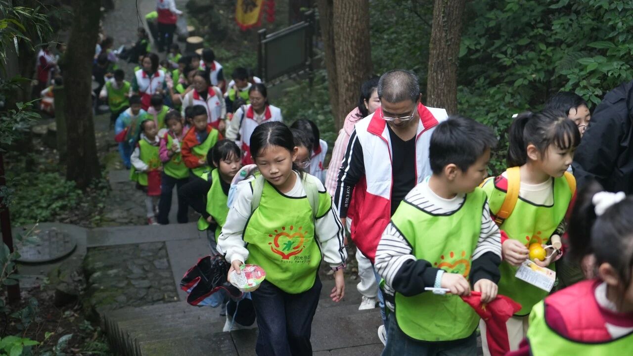 11月8日,诸暨市红十字会“阳光乐园”组织30余名儿童,在志愿者的带领与守护下,开展了一场以“感悟长征精神”为主题的秋日登山活动。志愿者们巧妙地将红色教育融入自然体验,引导孩子们在层林尽染的山径间,完成了一次沉浸式的精神洗礼。