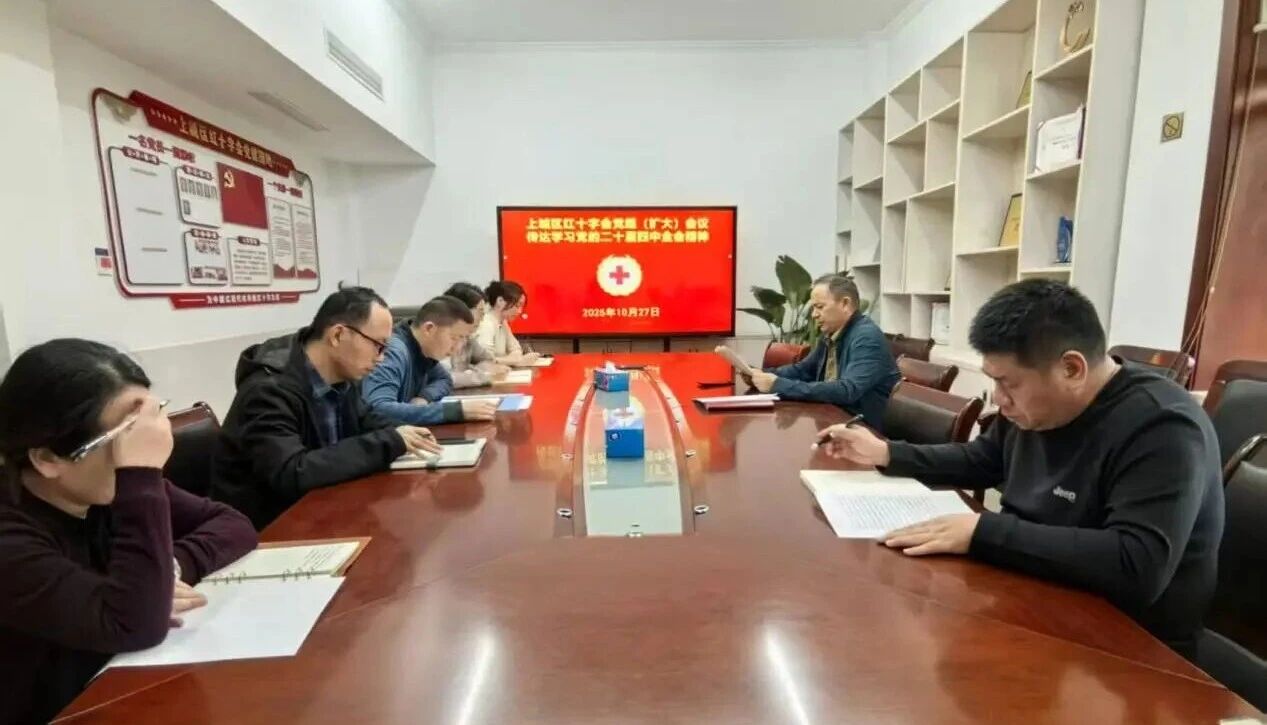 10月27日下午,杭州市上城区红十字会以会党组(扩大)会议形式传达学习党的二十届四中全会精神特别是习近平总书记在全会上所作的工作报告和重要讲话精神,研究部署上城区红十字会系统贯彻落实工作。会党组成员、副会长方虎主持会议并讲话,会党组成员作学习交流发言,会机关全体人员参加。