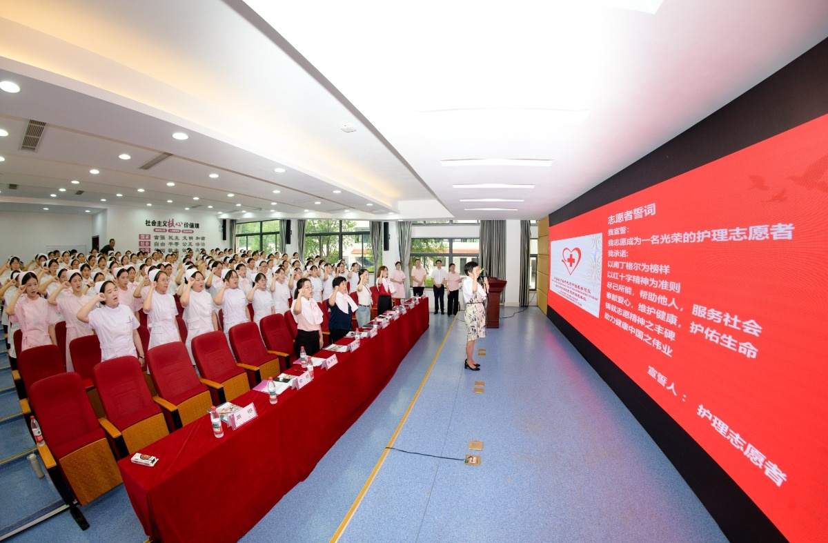 第49届南丁格尔奖获得者赵雪红领誓并作事迹报告,勉励志愿者提升技能、奉献爱心。服务队由护理专业师生组成,将充分发挥“护理+”专业优势,开展三项核心服务:急救知识宣讲、社区健康服务和老年关怀及健康科普教育。