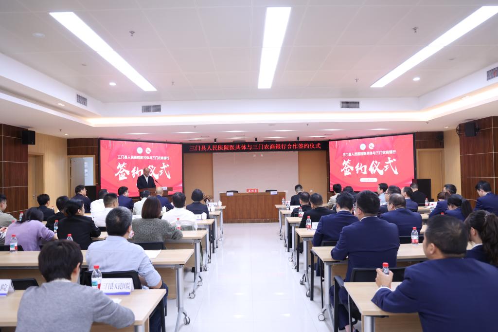 10月31日,为支持三门县人民医院医共体远程医疗救助信息化及卫生人才建设,进一步为广大患者带来更多生命希望,由县红十字会推进的县人民医院医共体与三门农商银行合作签约仪式在县人民医院滨海新城院区举行。