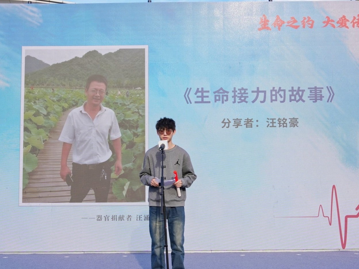 活动现场,捐献者汪涌的家属汪铭豪讲述了自己和父亲的故事。今年2月28日,这位年仅24岁的青年,在父亲突然去世时,突破传统观念的桎梏,力排众议做出捐献决定。然而,这个无比坚定的选择背后,是汹涌难抑的情感,当他和母亲一起在《人体器官捐献亲属确认登记表》上签字后,他却在医院的走廊上泣不成声。