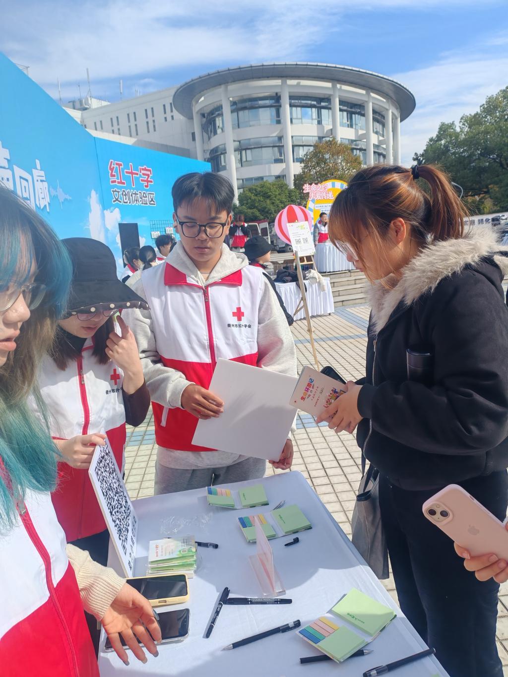 现场各点位均由三至五名志愿者守护,其中多数来自衢州职业技术学院。医学院的王馨悦、李燕鹏等同学守在人体模型旁,耐心讲解心肺复苏等急救技能。李燕鹏分享道:“我在高三时就已登记成为器官捐献志愿者,我觉得这是生命价值的延续。与其归于尘土,不如留下希望。”