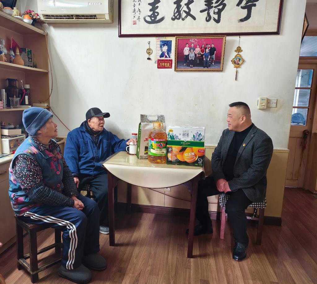 1月23日,杭州市拱墅区红十字会党组书记、常务副会长林建军带领党员干部走进结对的老房地社区,开展新春走访慰问,为结对的困难群众送去关怀与温暖。