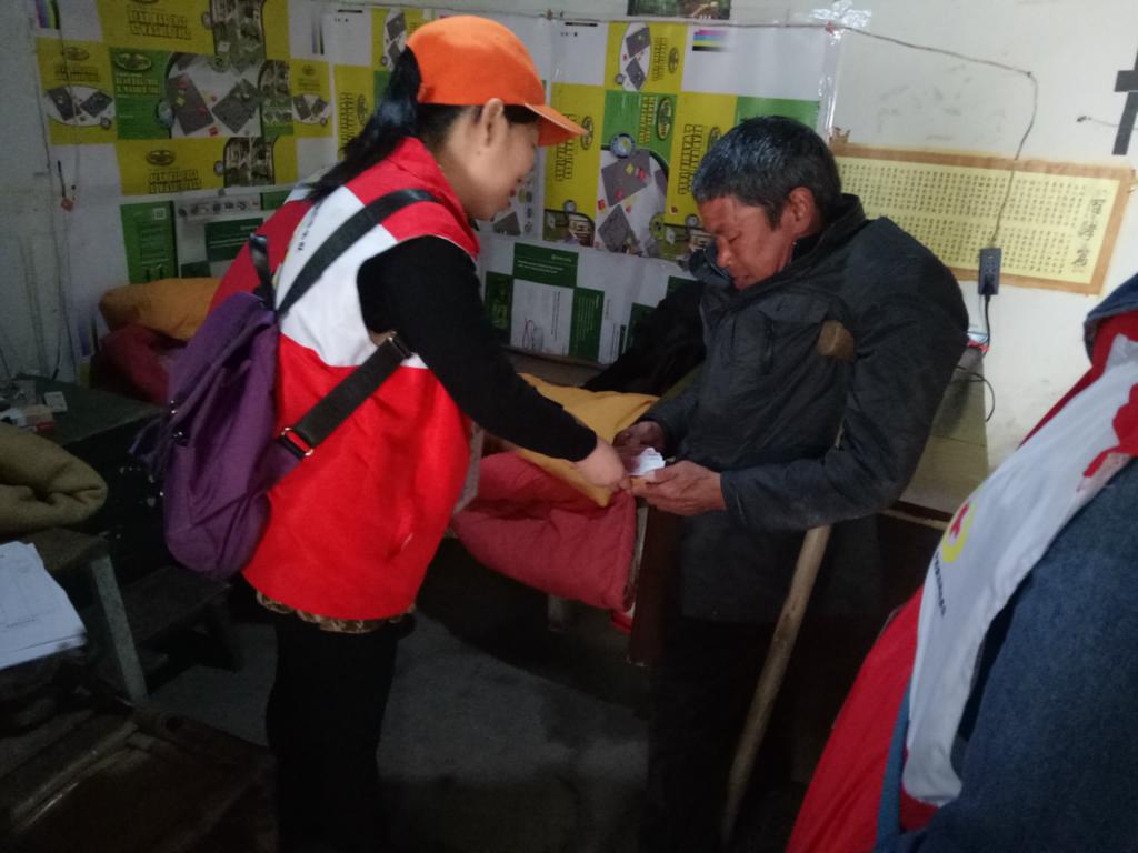 鲍先生的家是租的小房子,低矮阴暗,房间里一股难闻的气味。听鲍先生说,因身体不便,冬衣和被子已经五六年没有清洗了,床上的一床被子还是从垃圾堆里捡的,连枕头都已经黑得看不出布面原来的颜色。博爱志愿者把带去的新被子给他换上并帮他清理了房间,打扫了卫生,使得房间焕然一新。博爱志愿者还留下电话号码,告诉他有事需要帮忙可以随时拨打电话。博爱志愿者所做的一切,让鲍先生感动不已,连说:“谢谢你们志愿者,感谢好心人!谢谢红十字会,谢谢政府!”(郎玲玲)