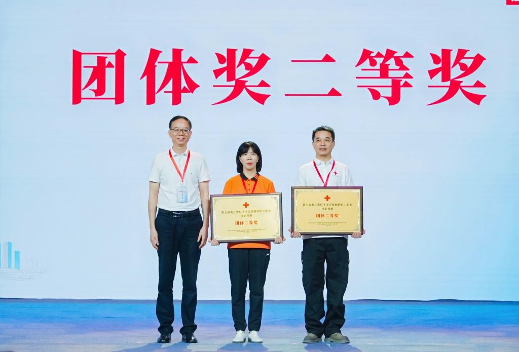 台州代表队王静宜、省交通集团代表队李政凭借扎实的理论功底和精湛的实操技能分获心肺复苏组、肠管外溢组第一名,经省总工会核准后将被授予“浙江金蓝领”称号。